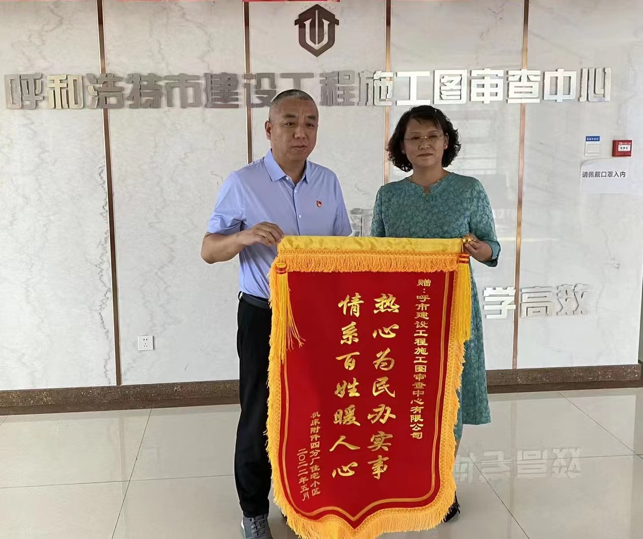 7月8日下午,機床附件四分廠住宅樓居民代表孫國燕女士送上了:“熱心為民辦實事,情系百姓暖人心”的錦旗,表達了感謝之情。王建國同志作為一名共產黨員,心系群眾,把群眾的利益放在首位,彰顯了呼市審圖中心有限公司一如既往踐行“學史力行,實干為民”的黨性,以便企利民為導向,持續優化營商環境,用心用情用力辦實事、辦好事,使人民群眾的獲得感更加充實、幸福感更可持續、安全感更有保障。