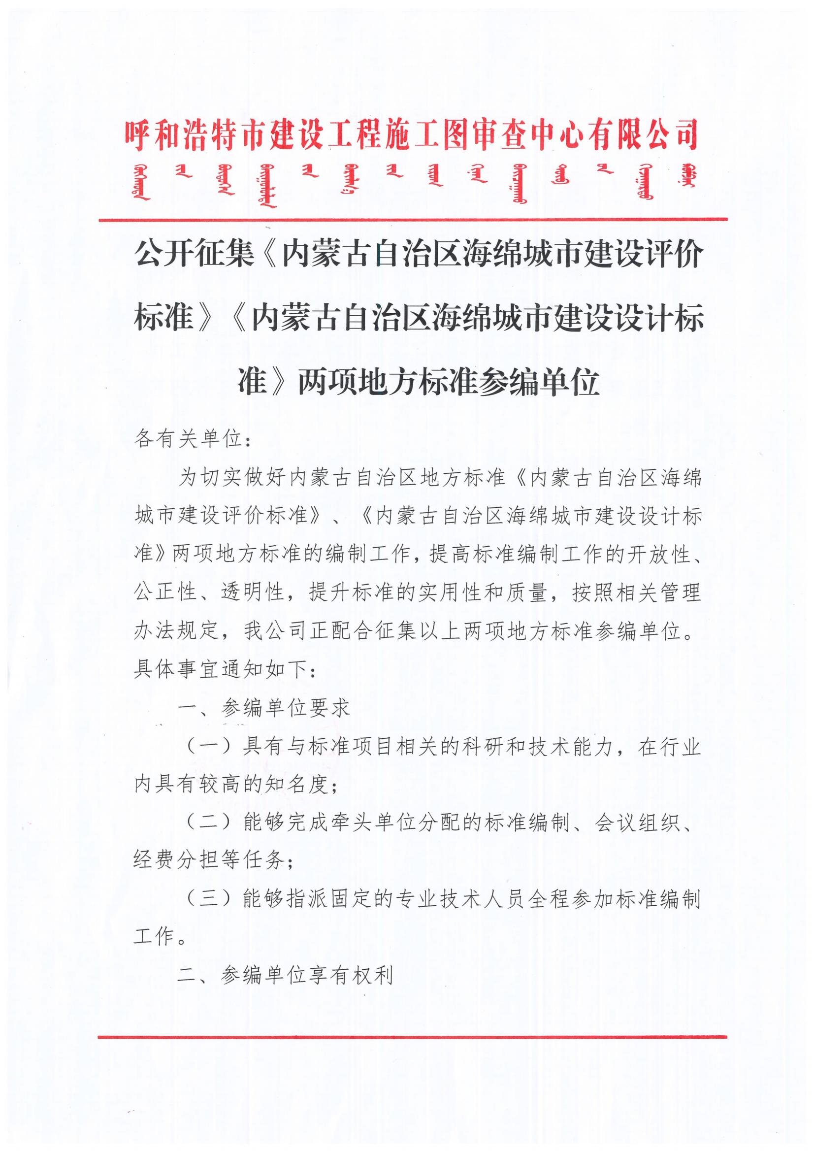 公開征集《內(nèi)蒙古自治區(qū)海綿城市建設(shè)評價標準》 《內(nèi)蒙古自治區(qū)海綿城市建設(shè)設(shè)計標準》 兩項地方標準參編單位